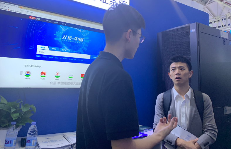 “区块链存证”是构信网展区的重头戏,展区人潮涌动,参展观众络绎不绝。构信网的市场负责人陈航也热情地为来访咨询的参观者介绍构信网的产品应用及未来的发展方向。